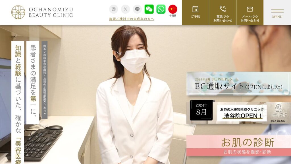 渋谷お茶の水美容形成クリニックでは、顔のエラ部分へのボトックス注射による施術を提供しております。施術に際しましては、医師による丁寧なカウンセリングを実施し、患者様お一人おひとりのご要望やご不安についてお伺いする体制を整えております。ご予約はオンラインでも受け付けており、完全予約制を採用しておりますので、待ち時間なくスムーズにご案内が可能です。また、プライバシーに配慮した空間で対応しておりますので、安心してご相談いただけます。渋谷駅より徒歩5分の場所にございます。