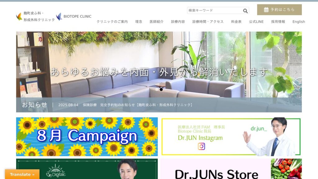 麹町スキンクリニックでは、顔のエラ部分へのボツリヌストキシン注射による施術を提供しております。施術に際しましては、医師による丁寧なカウンセリングを行い、患者様お一人おひとりのご希望や状態について詳しくお伺いし、ご納得いただいた上で進めてまいります。同クリニックの施術は完全予約制となっており、オンラインでのご予約も受け付けておりますので、ご都合の良い時間帯をお選びいただけます。また、患者様のプライバシーに配慮した環境で診療を進めておりますので、どうぞ安心してご来院ください。アクセスは麹町駅より徒歩3分、市ヶ谷駅より徒歩4分でございます。