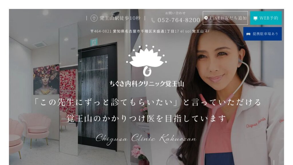 覚王山駅より徒歩1分の場所に、ちぐさ内科クリニック覚王山がございます。こちらでは、顔のエラのボトックス注射による施術を受け付けております。施術に際しましては、医師による丁寧なカウンセリングを行い、ご相談に応じられる体制を整えております。ご予約はオンラインでも受け付けており、完全予約制となっておりますので、待ち時間なくスムーズにご案内が可能です。また、プライバシーに配慮した空間で、安心してご相談いただけるよう努めております。
