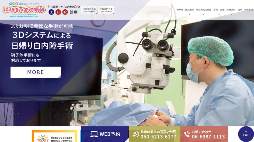 江坂まつおか眼科では、顔のエラ部分へのボトックス注射による施術を提供しております。施術をご希望の方には、医師による事前のカウンセリングを実施し、ご不明な点やご不安な点についてご相談いただける体制を整えております。ご予約はオンラインでも受け付けており、完全予約制のため、待ち時間の少ないスムーズな対応を心がけております。また、プライバシーに配慮した空間で、患者様が安心してご相談・施術を受けられるよう努めております。江坂駅より徒歩3分というアクセスしやすい立地です。